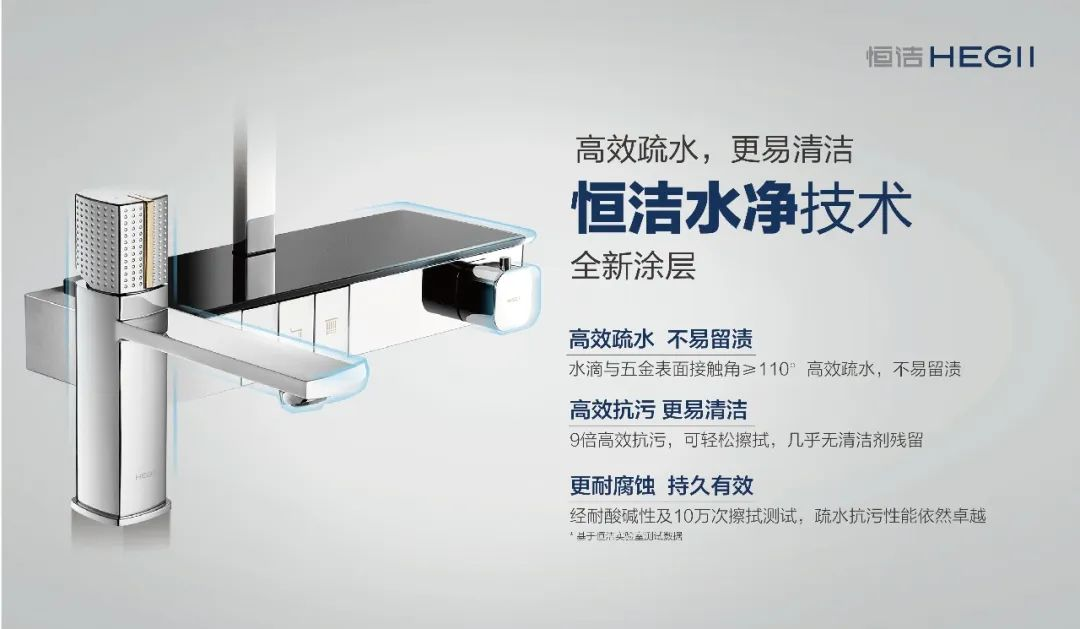 再如,衛(wèi)浴生活中長(zhǎng)期存在的痛點(diǎn)——水垢和污漬。水龍頭、花灑等衛(wèi)浴五金,使用過(guò)后一旦清潔不及時(shí)就容易水漬斑斑,甚至生銹,不僅會(huì)讓衛(wèi)浴五金失去光澤,還容易滋生細(xì)菌。雖然網(wǎng)上針對(duì)水垢的清除,有各種各樣的方法,但大多治標(biāo)不治本。恒潔創(chuàng)新推出的水凈技術(shù),直擊水垢、污漬等痛點(diǎn),從源頭上解決衛(wèi)浴產(chǎn)品的清潔難題。目前,恒潔水凈技術(shù)已經(jīng)應(yīng)用在恒潔坐便器、花灑和水龍頭等多種產(chǎn)品上,以實(shí)用科技助力用戶升級(jí)品質(zhì)生活。
