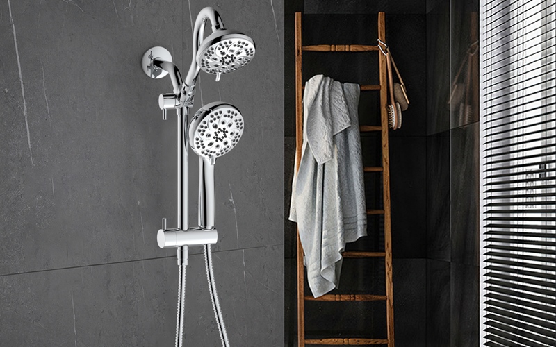 上出水彎管套裝;頂噴內(nèi)置球頭,可實(shí)現(xiàn)多角度旋轉(zhuǎn)調(diào)整;把手切換頂噴出水、花灑出水;轉(zhuǎn)動(dòng)把手調(diào)節(jié)滑座高低;8功能出水花灑