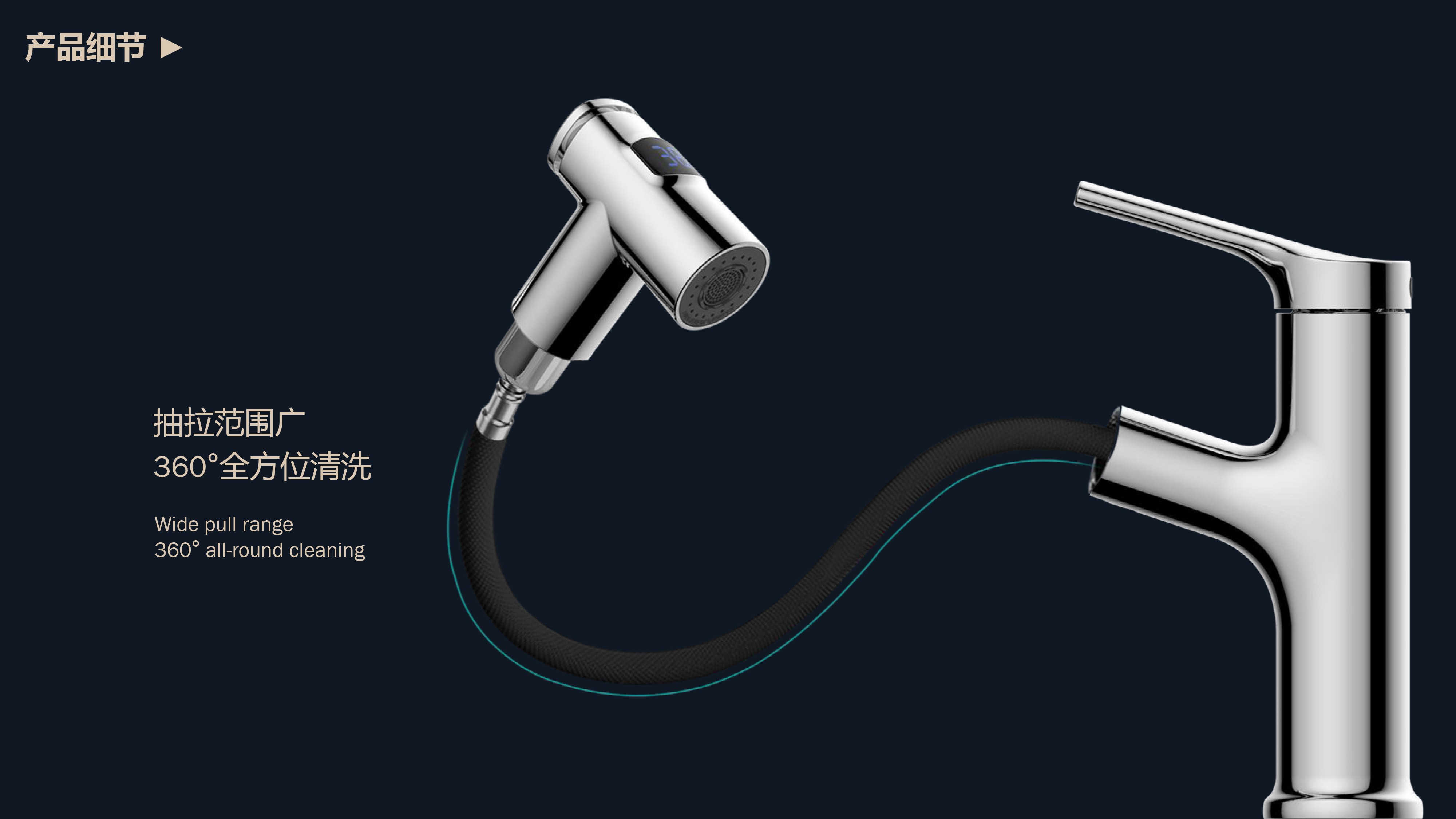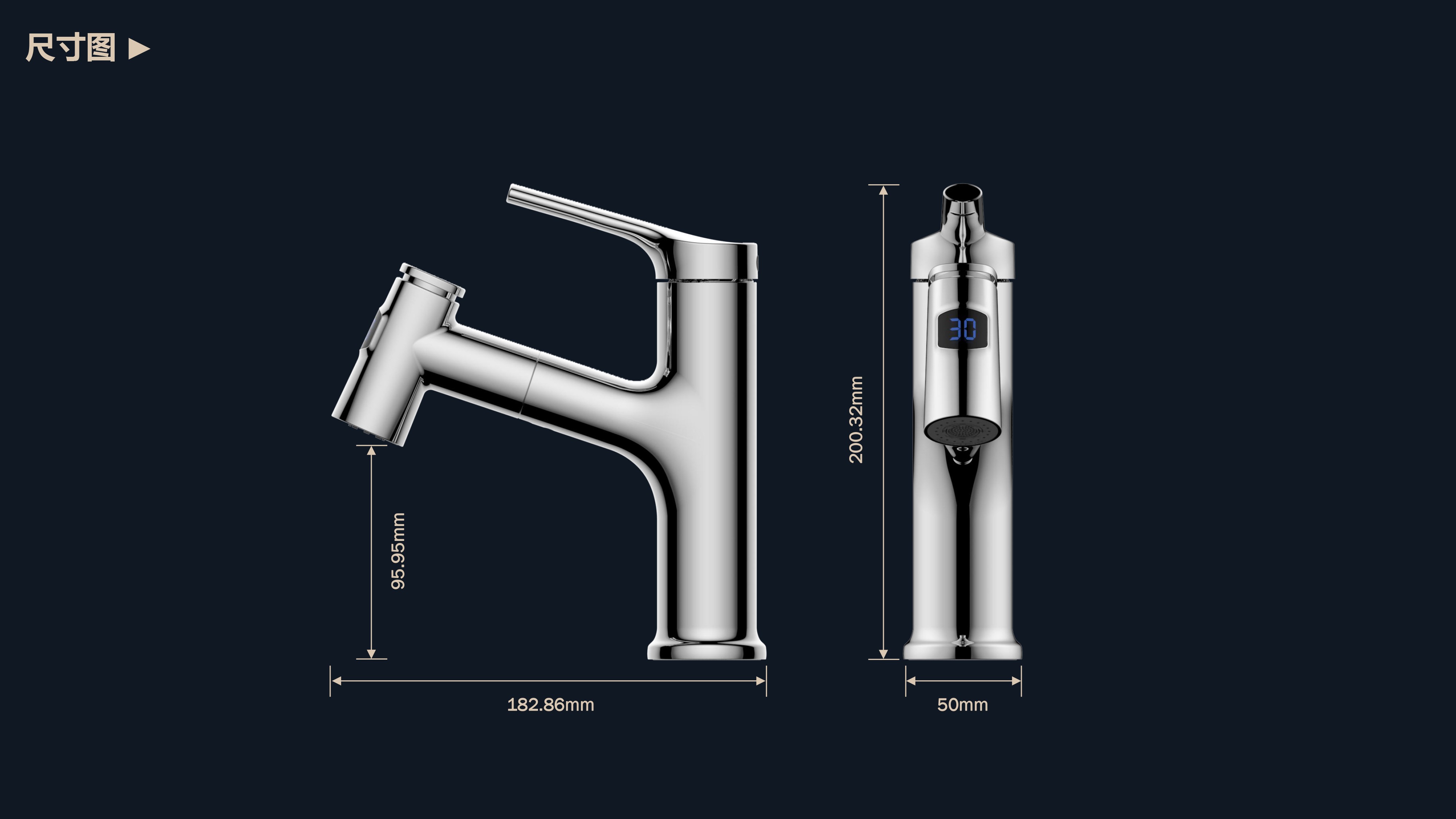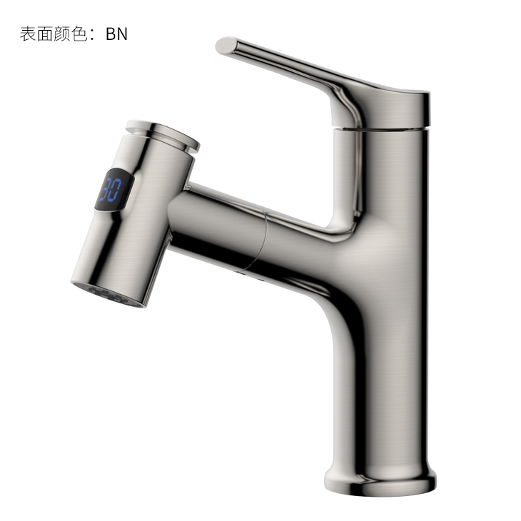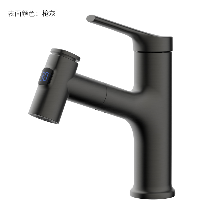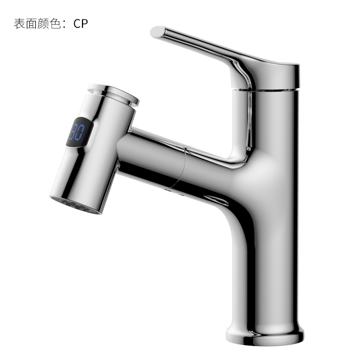 數(shù)顯面盆抽拉龍頭,解鎖龍頭舒適用法;360°全方位清洗;日常洗頭利器,抽拉出水輕松洗;按壓切換兩功能水花抽拉頭;出水溫度實(shí)時(shí)看得見(jiàn),安全防燙