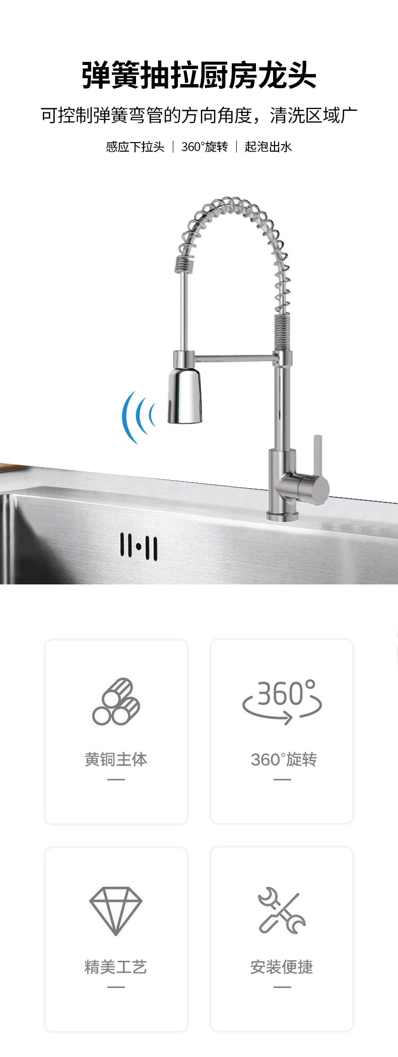 FK8312-C0 感應(yīng)下拉頭廚房彈簧龍頭